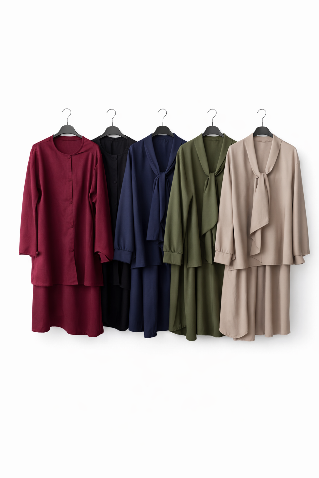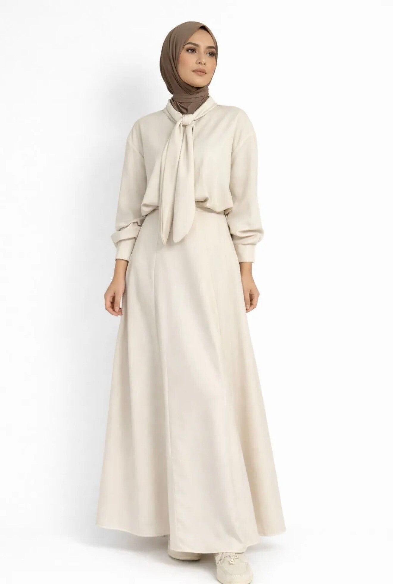 Deze tweedelige set straalt zachtheid, elegantie en klasse uit. De blouse met subtiel strikdetail en de soepel vallende rok maken deze outfit perfect voor een stijlvolle en vrouwelijke look.